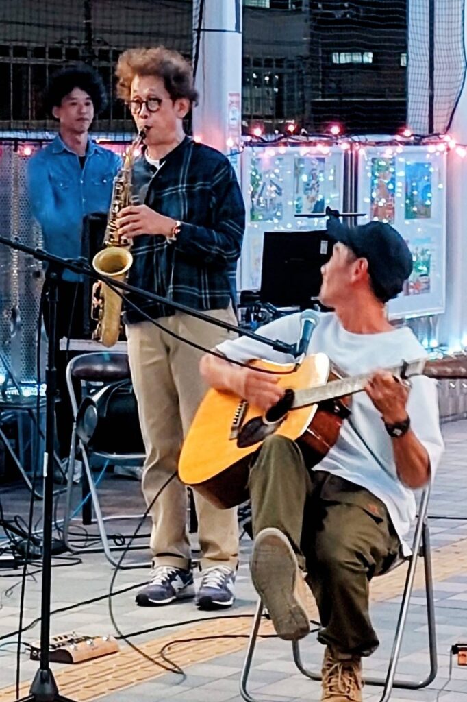 昨年から演奏をさせていただいていますが、屋外(路上)でも屋根付きで、とても音が反響し、心地よく演奏できるこの場所がとっても気に入りました。