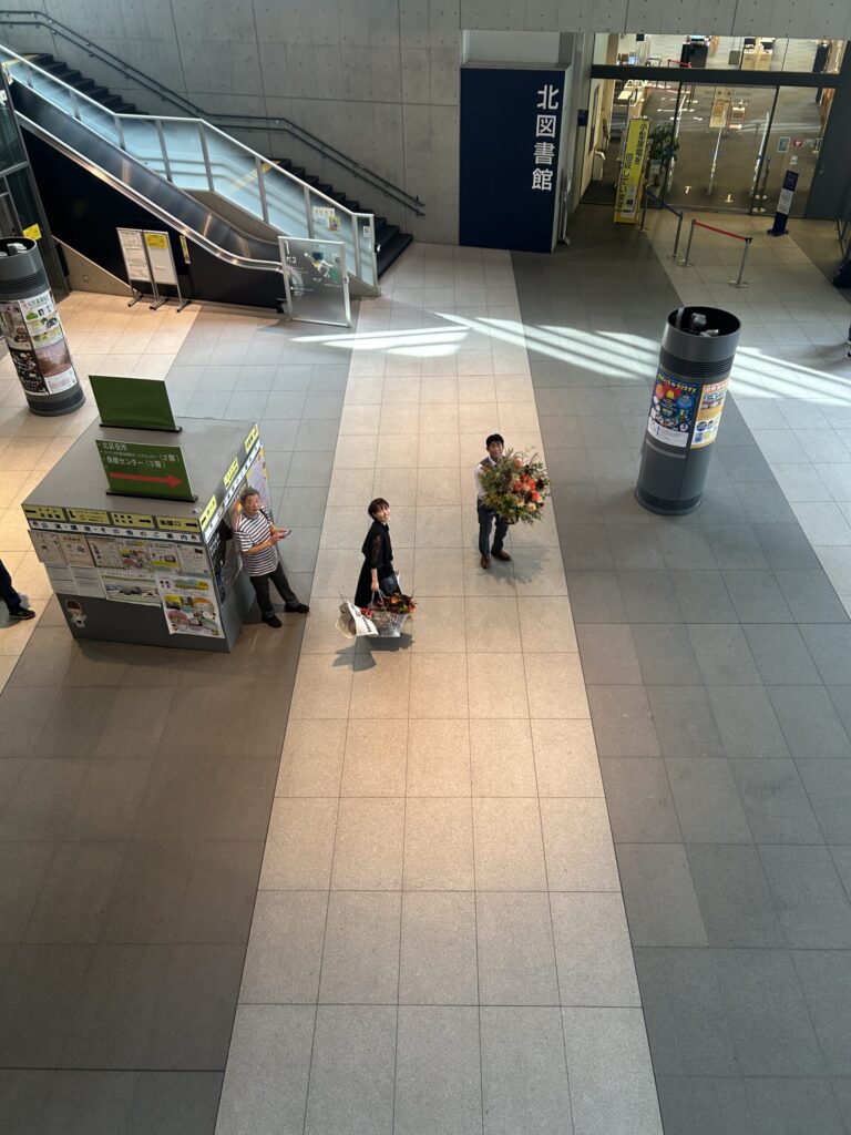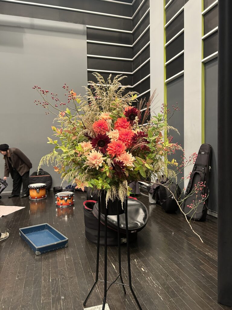 今回は羽鳥絢子先生が活けて戴いたお花が会場を正に!!華やかに彩ってくれています。