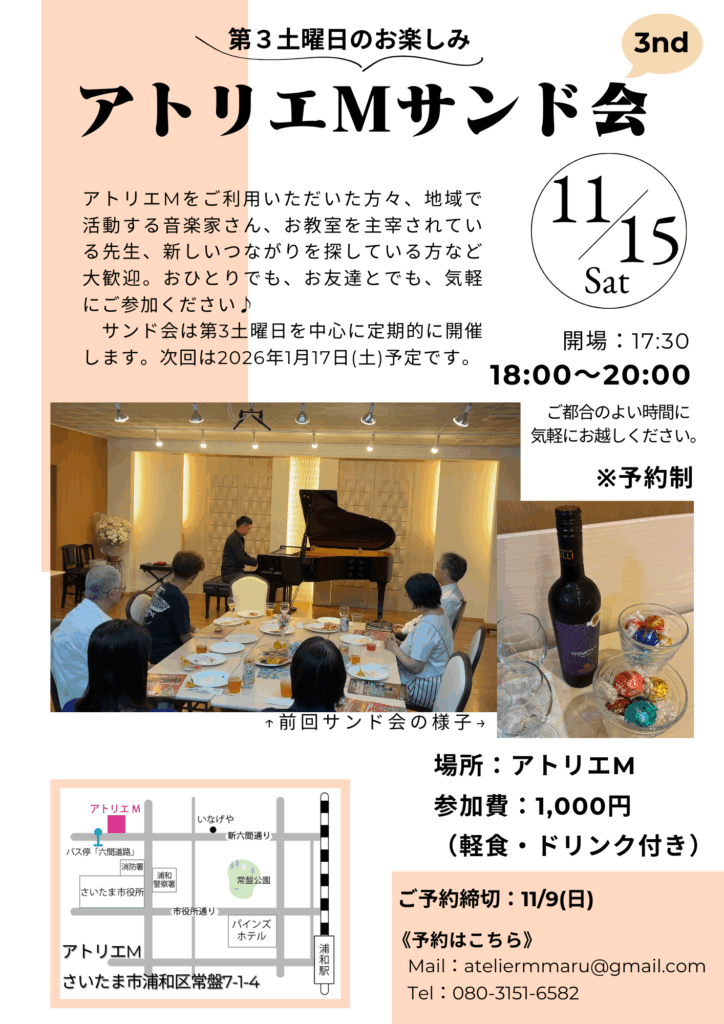 翌日の11月15日は、浦和にある音楽スタジオ「アトリエM」さんが主催する、その名も「サンド会」に伺いました。