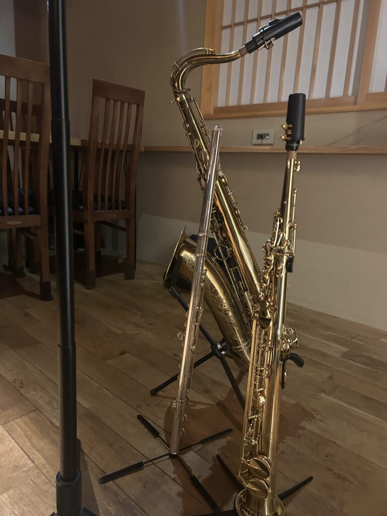 今回のセットリストには、tenor、sopranoの各サックスに、フルートを加えて演奏する曲を準備。