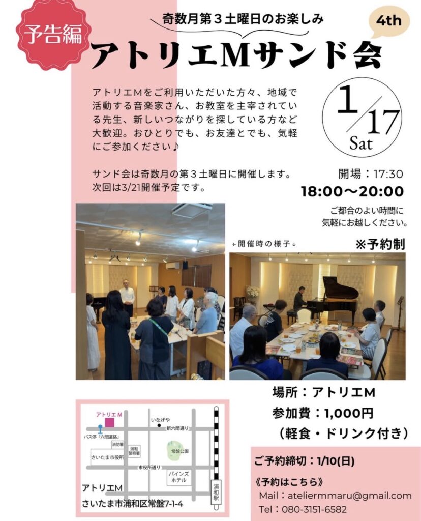 次なる目的地は今回で3回目の参加。浦和にある「アトリエM」さんが主催。奇数月の第三土曜日に開催する音楽関係者の集い・・・
