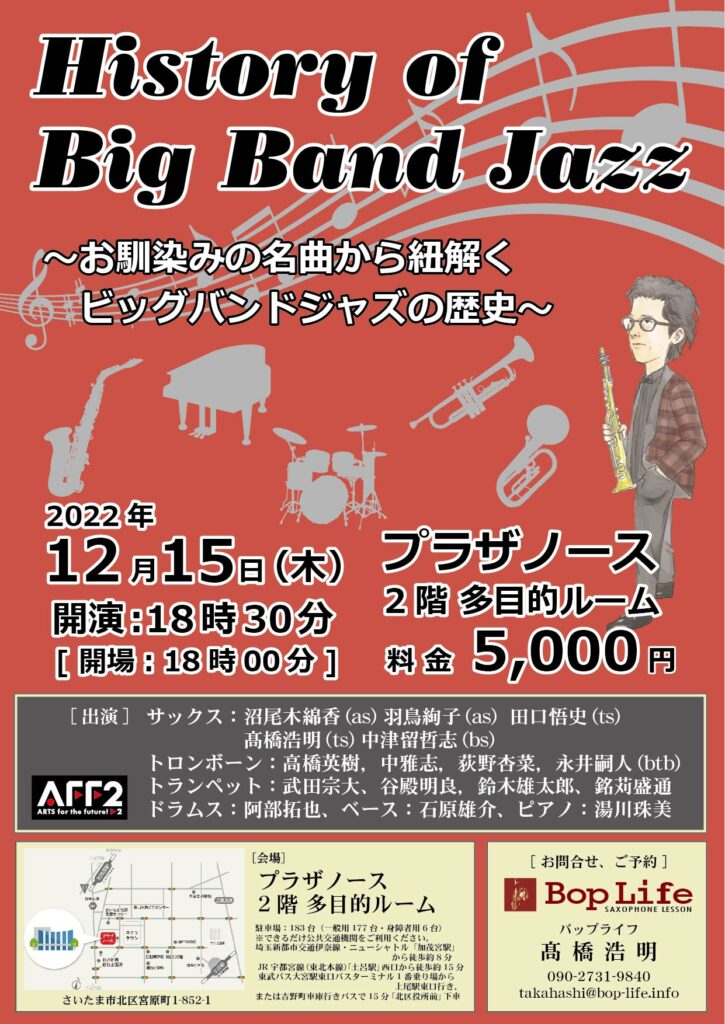 こちらは3年前のライブフライヤーです。テーマは「ビッグバンドジャズの歴史」でした。