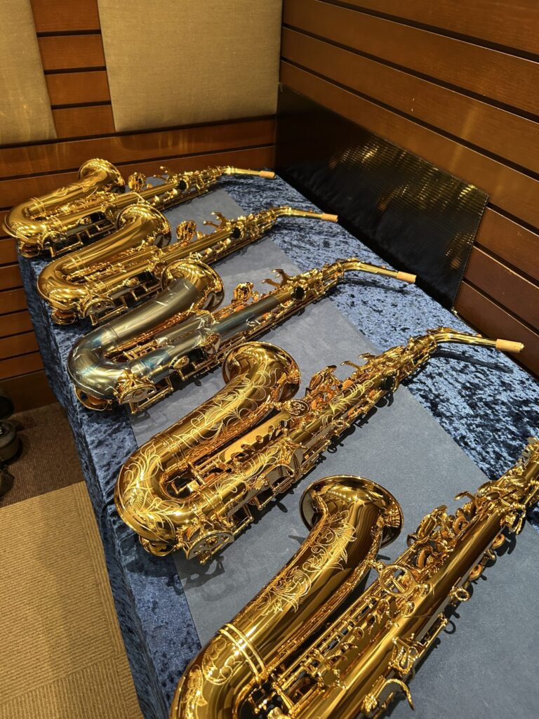 いつもお世話になっております、「下倉楽器大宮店」でご予算に応じたアルトサックスを数本準備して頂きました。