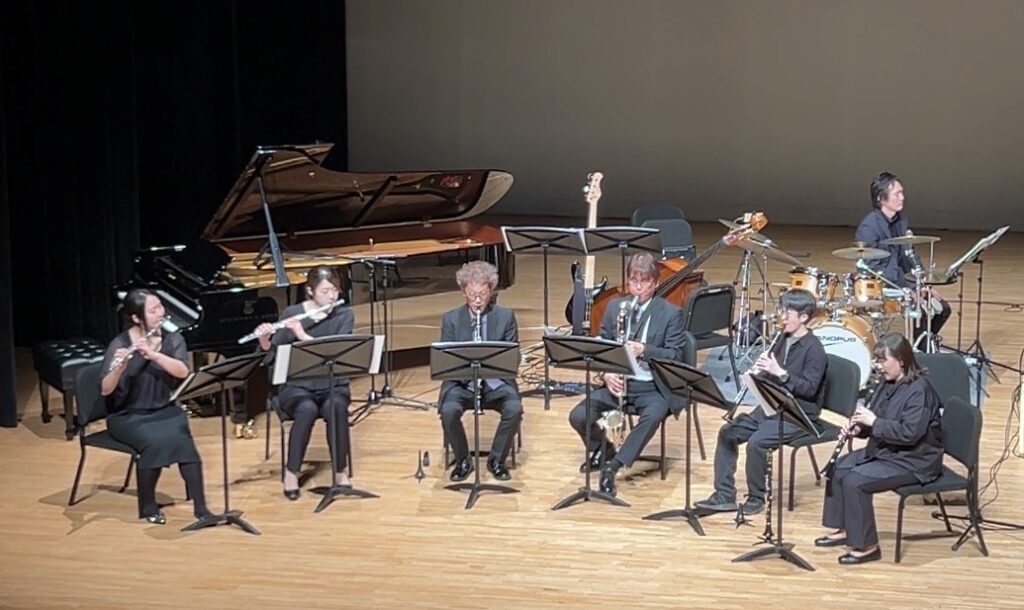 定刻時間の18時を迎え、オープニングアクトの木管6重奏がスタート。ドラムスの河野さんにもサポートして頂きました。