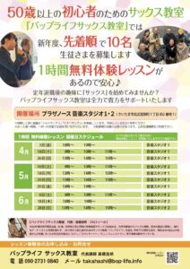 いつもブログをご覧いただきありがとうございます。 さいたま市北区プラザノースで開催中。初心者が安心して通えるサックス教室。 バップライフサックス教室 代表・テナーサックス奏者の髙橋浩明です。https://bop-lif […]